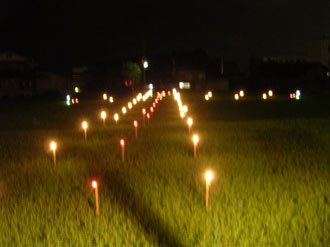 和紙の狐は田野倉集落の民話「大谷地の三九郎狐(さんくろうきつね)」に因んでいるのだと思います。
