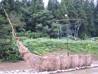 和紙の狐は田野倉集落の民話「大谷地の三九郎狐(さんくろうきつね)」に因んでいるのだと思います。